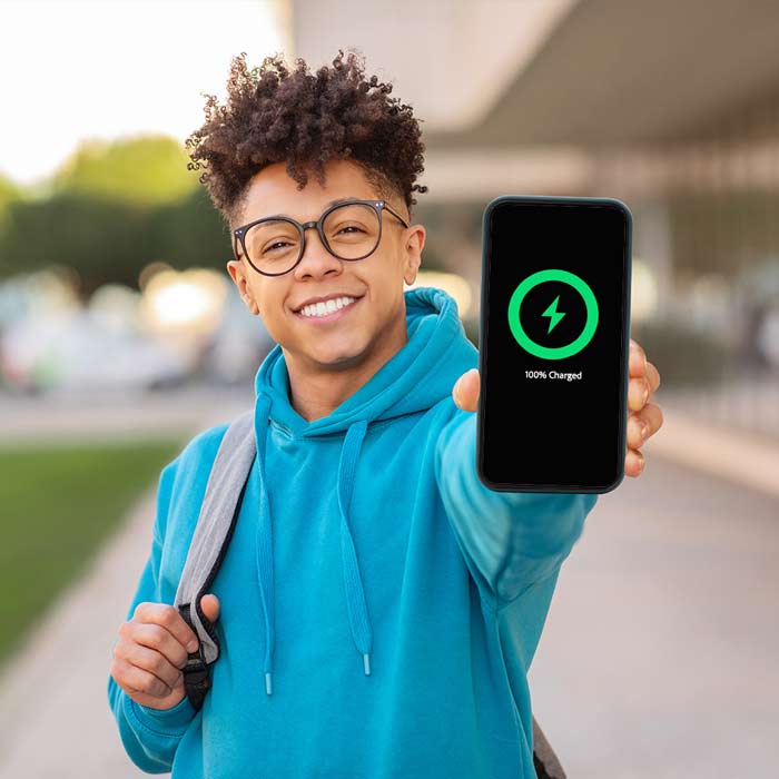 Keep your phone powered up and ready with ChargeHero™. With built-in Lightning and USB-C cables, it ensures all devices stay charged, so your family is always just a call away, no matter where they are.